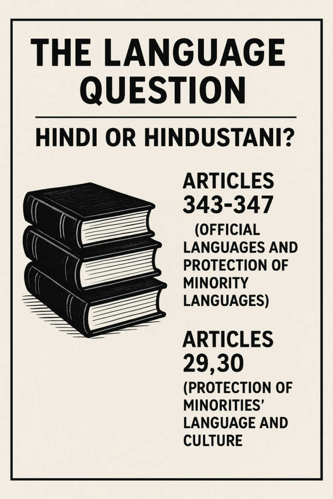 The language issue was fraught with regional passions. Hindi was promoted as the official language (Articles 343-344), but English was allowed to remain for 15 years post-adoption, extended several times.